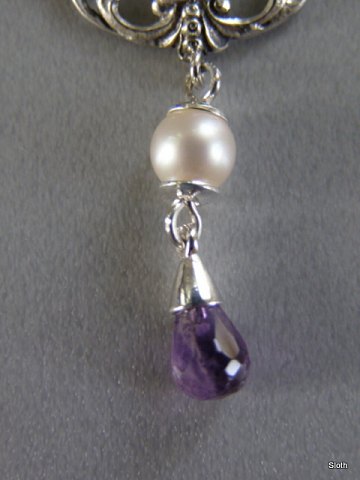 Halssmykke 925 9 g. Med Akoya Perle og Ametyst L: 46 cm Emne nummer: 11991
