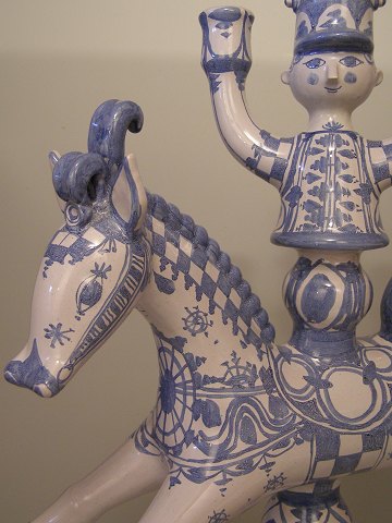 Bjørn wiinblad, 1918-2006 En stor figur i form af en hest med rytter, af glaseret keramik sign. Bjørn Wiinblad 1993, h.67 l:53 Emne nummer: 10088k