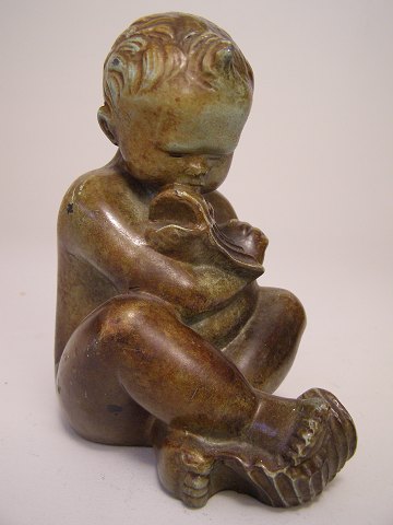 Dreng med fisk, patineret bronze sign. K. H., h:14