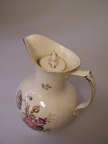 Royal Copenhagen,1862-910 Chokoladekande med låg h:23,5, Frijsenborg Blomstermotiv på svejfet stel med guldkant
