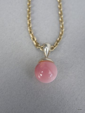 Sølvhalskæde 925 S. med Rosa Glasperle L: 44 cm.