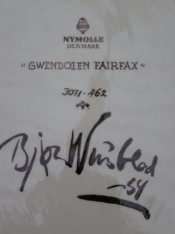 Bjørn wiinblad, 1918-2006, Oval platte, "Gwendolen Fairfax" Nymølle 3071-462, sign. Bjørn Wiinblad 1954, l:35 b:29 Emne nummer: 10256k