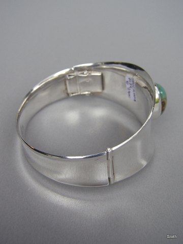 Sølvarmring 925 S. Michelsen Stockholm design Gertrud Engel med Krysopras D: 5,5-6,0 cm.