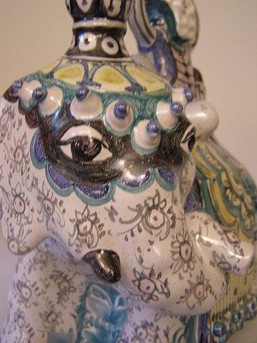 Bjørn wiinblad, 1918-2006 Unika Figurstage i form af Kong Salomon ridende på elefant, af glaseret keramik sign. Bjørn Wiinblad 1976, h:33,5 l:23 d:18