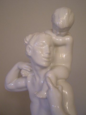 B&G Kai Nielsen Blanc de chine Fader med barn på delfin h:42,5cm. Emne nummer: 10422