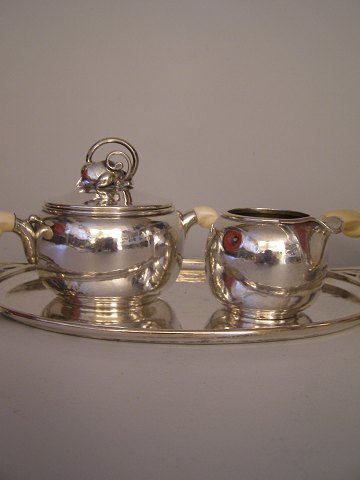 Kaffeservice af sterling sølv, med skafter af elfenben, sign. Holger Rasmussen 1945-1956 Emne nummer: 10455