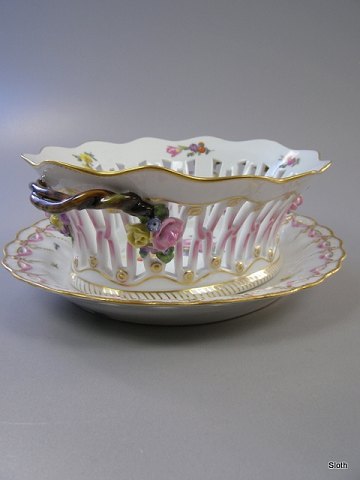 R.C. 4/1579 og 4/1580 Saksisk Blomst Frugtskål med Underfad 1. sort. H: 10 cm. L: 27 cm.