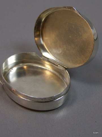 SOLGT Oval Pilleæske i sølv H: 1,5 cm. L: 4,5 cm. B: 3,5 cm. Emne nummer: 18034