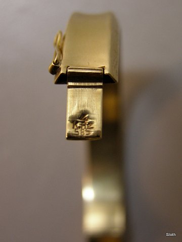 Armring 585 Guld med enkelte tryk D: 5*6 cm. Emne nummer: 19081