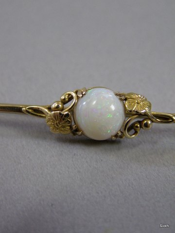 SOLGT Broche Med Opal 14 karat guld Sign. VWL L: 5 cm. Emne nummer: 19086