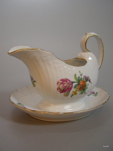 R.C. 493/1649 Let saksisk Blomst Sauceskåle 2. Sort. guld let slidt L:26 cm. H: 9 cm.