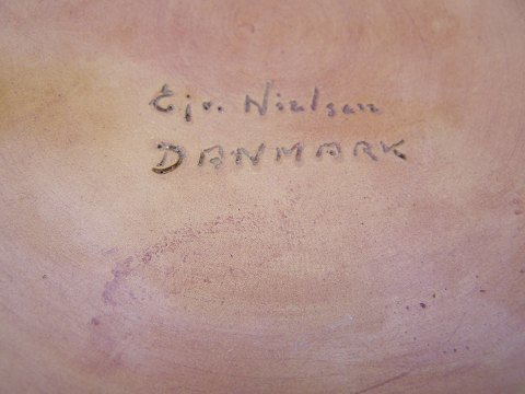 Keramik bordskål , sign. Ejner Nielsen, h:5cm. dia:31cm. Emne nummer: 10500