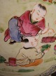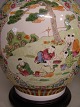 Et par store bordlamper på stand af træ, bemalet med figurer, H: 58cm. der er desværre en brændingsfejl som det fremgår af billeder Emne nummer: 10525