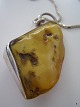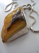 Stort Ravsmykke i rustik sølv kæde 925/Lund L: 80cm.