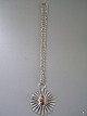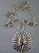Flot Halssmykke signeret Jacob Hull, i forsølvet metal, Blomst med sten D: 7,5 cm. Længde med Kæde 37,5 cm Emne nummer: 11162