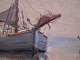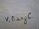 SOLGT. Både ud for kyst sign. V. Bang. C. ubekendt kunstner