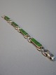 SOLGT Sølvarmbånd med grønne sten 830 S L: 19 cm. sign. EF Ejnar Fehrn