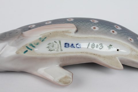 Bing & Grøndahl Figurer Lille liggende forrel nr. 2169 Længde 16 cm 1. sortering - fin hel stand