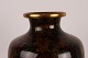 Stor gammel balusterformet cloisonné vase dekoreret med blomster På stand af udskåret træ med defekter Højde u/stand 32 cm - diameter 18 cm Fin stand