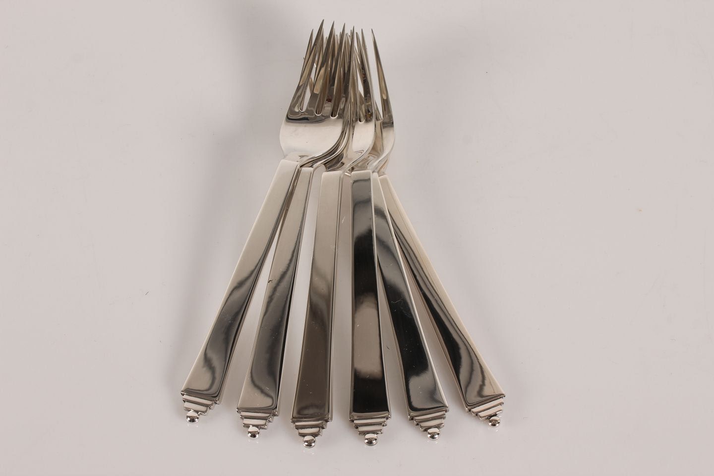 Georg Jensen Silver Pyramid flatware by Harald Nielsen 1927 Forks L 18 cm Made of sterling silver with stamp from the period 1930-45 Very nice condition