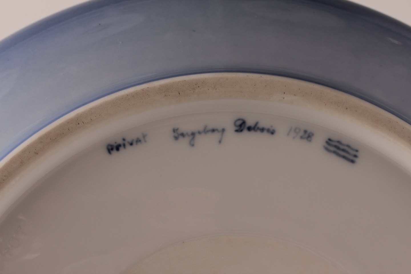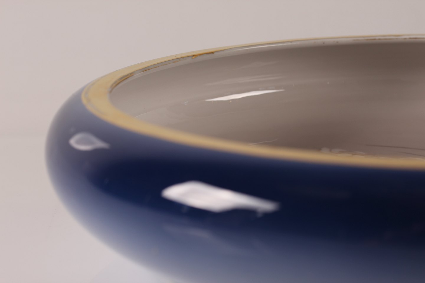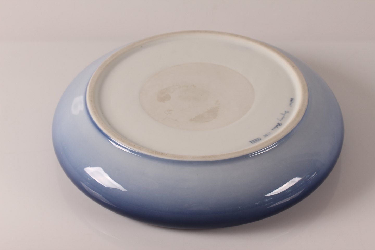 Stort Royal Copenhagen fad med floral dekoration, mørk blå yderside og guldkant Dekoreret og signeret af Ingeborg Debois 1928 Diameter 32 cm - højde 6,5 cm 1. sortering og fin fejlfri stand