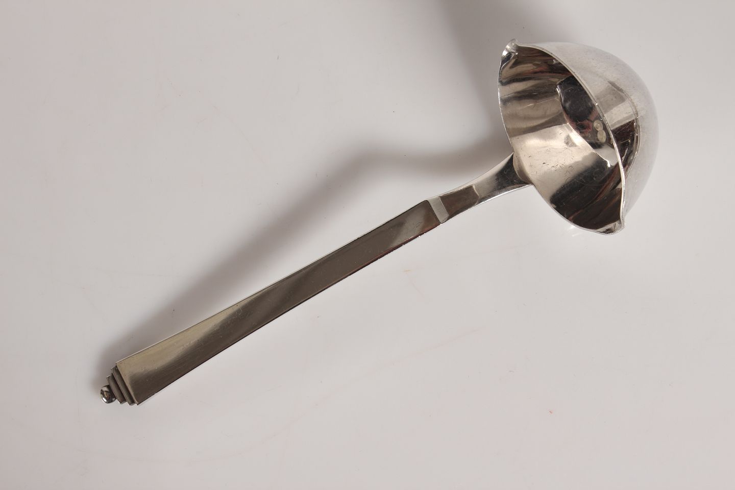Georg Jensen Sølv Pyramide bestik tegnet af Harald Nielsen 1927 Sauceske Længde 18 cm Fremstillet af sterling sølv med stempel fra perioden efter 1945 Rigtig fin stand uden monogram