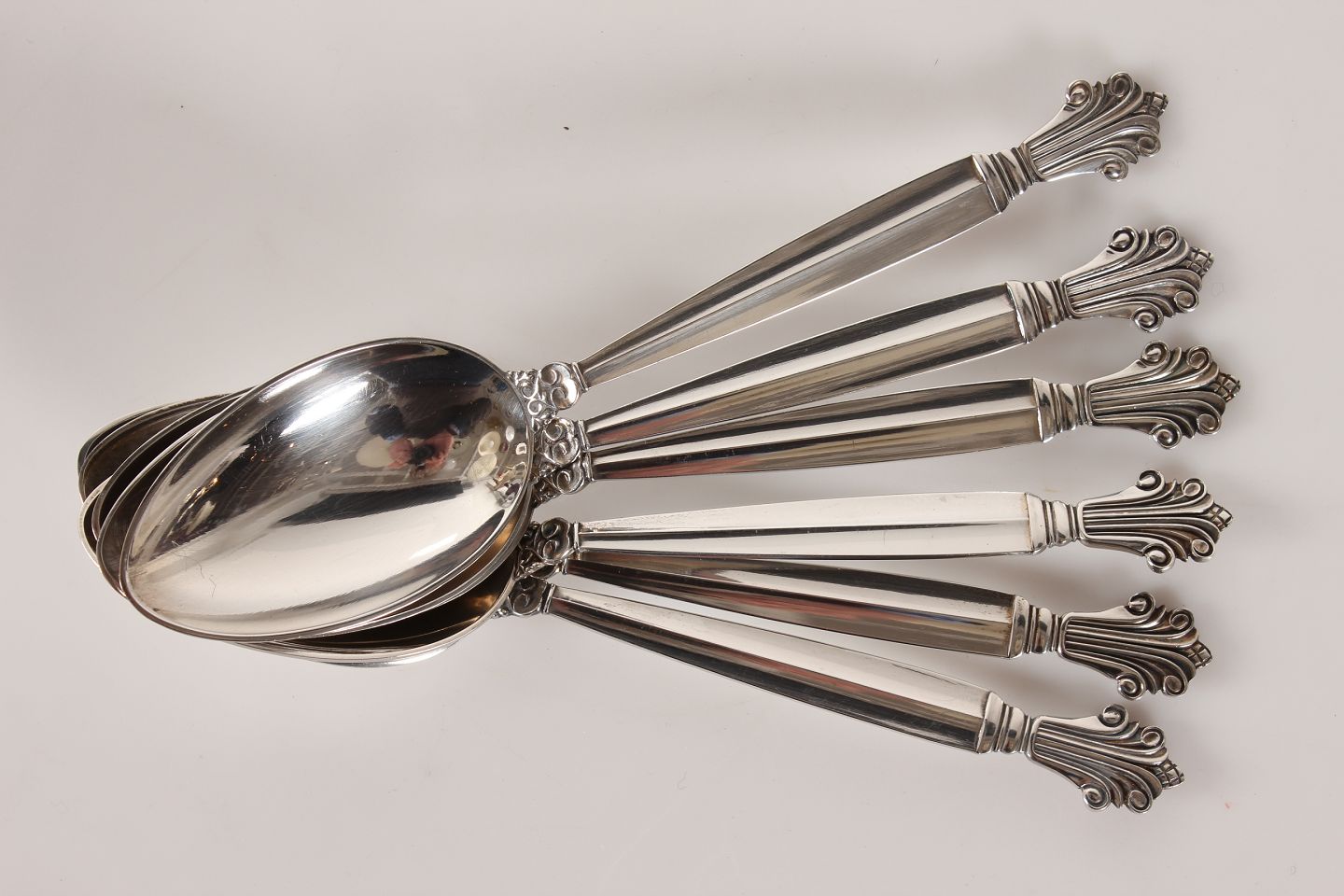 Georg Jensen Silver Acanthus cutlery made of sterling silver after design by Johan Rohde in 1917 Soup spoons Length 18,8 cm With stamp from the period after 1945 Nice vintage condition