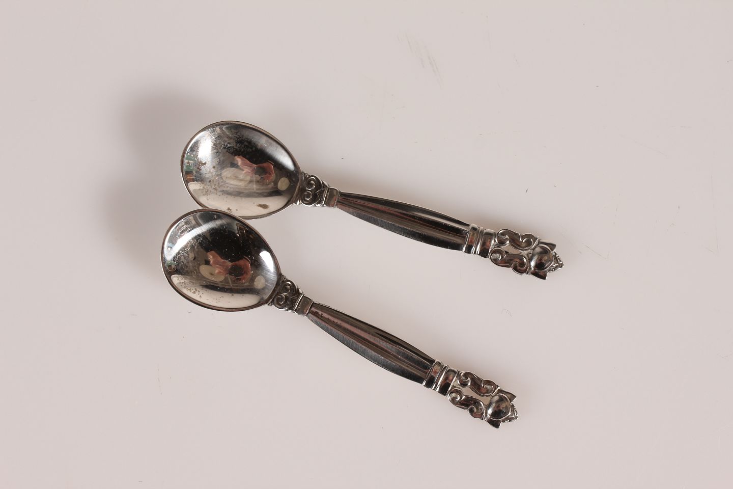 Georg Jensen Silver Acorn cutlery made of sterling silver Designed by Johan Rohde in 1915 Salt Spoon Length 5,7 cm With stamp after 1945 Nice vintage condition with tiny spots