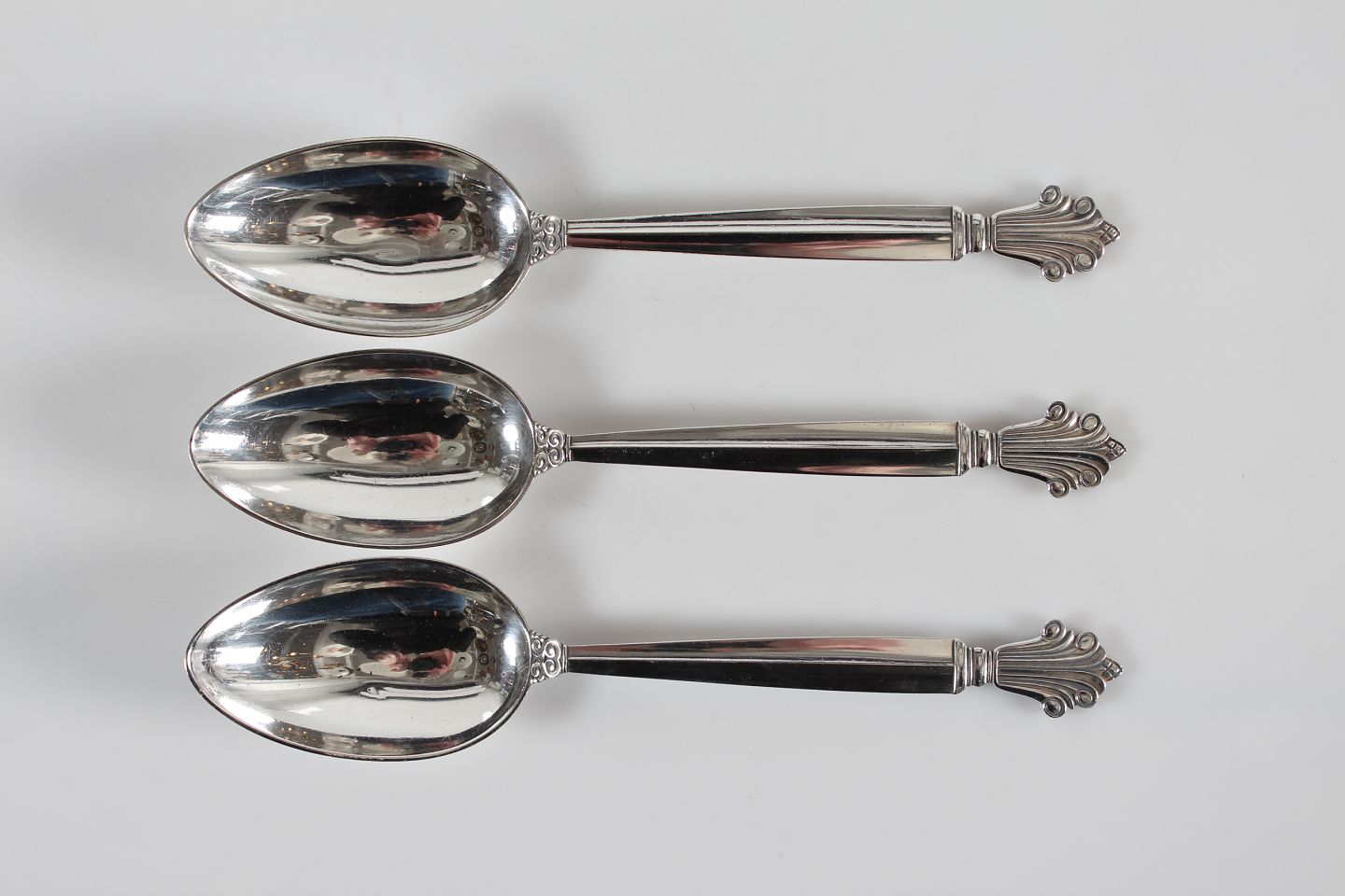 Georg Jensen Sølvsmedie Dronning bestik af sterling sølv tegnet af Johan Rohde i 1917 Store suppeskeer Længde 20,5 cm Med stempel fra perioden efter 1945 Fin stand