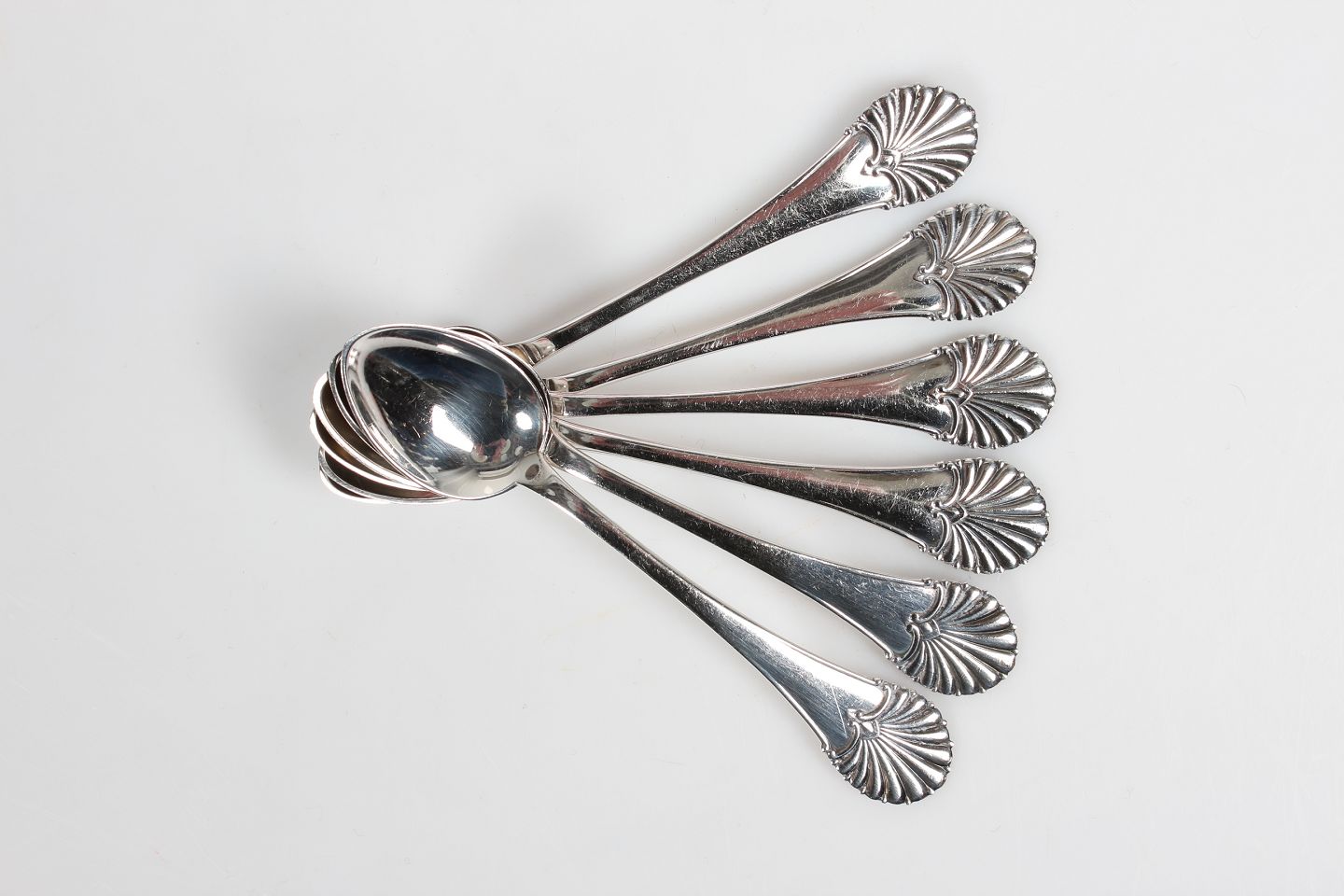 Palmet Sølvbestik Kaffeskeer Længde 12 cm Fremstillet af Frigast i 3-tårnet ægte sølv Fin stand uden inskription