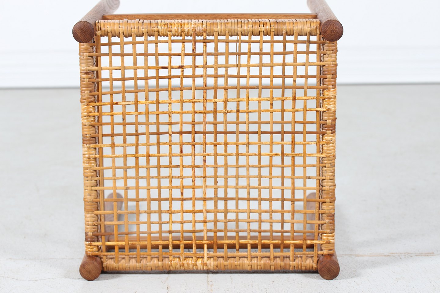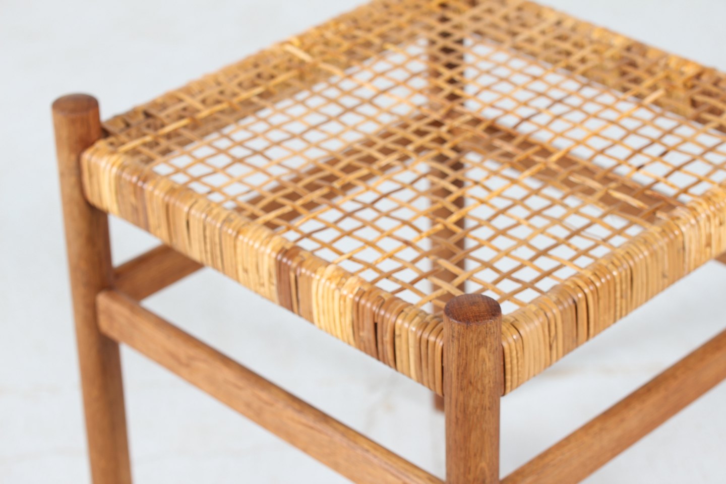 Dansk Møbeldesign Skammel af patineret eg med sjene flet Højde 48 cm Bredde 42 cm Dybde 42 cm Dansk Møbelproducent Fin stand med patina Skamlen kan beses efter aftale