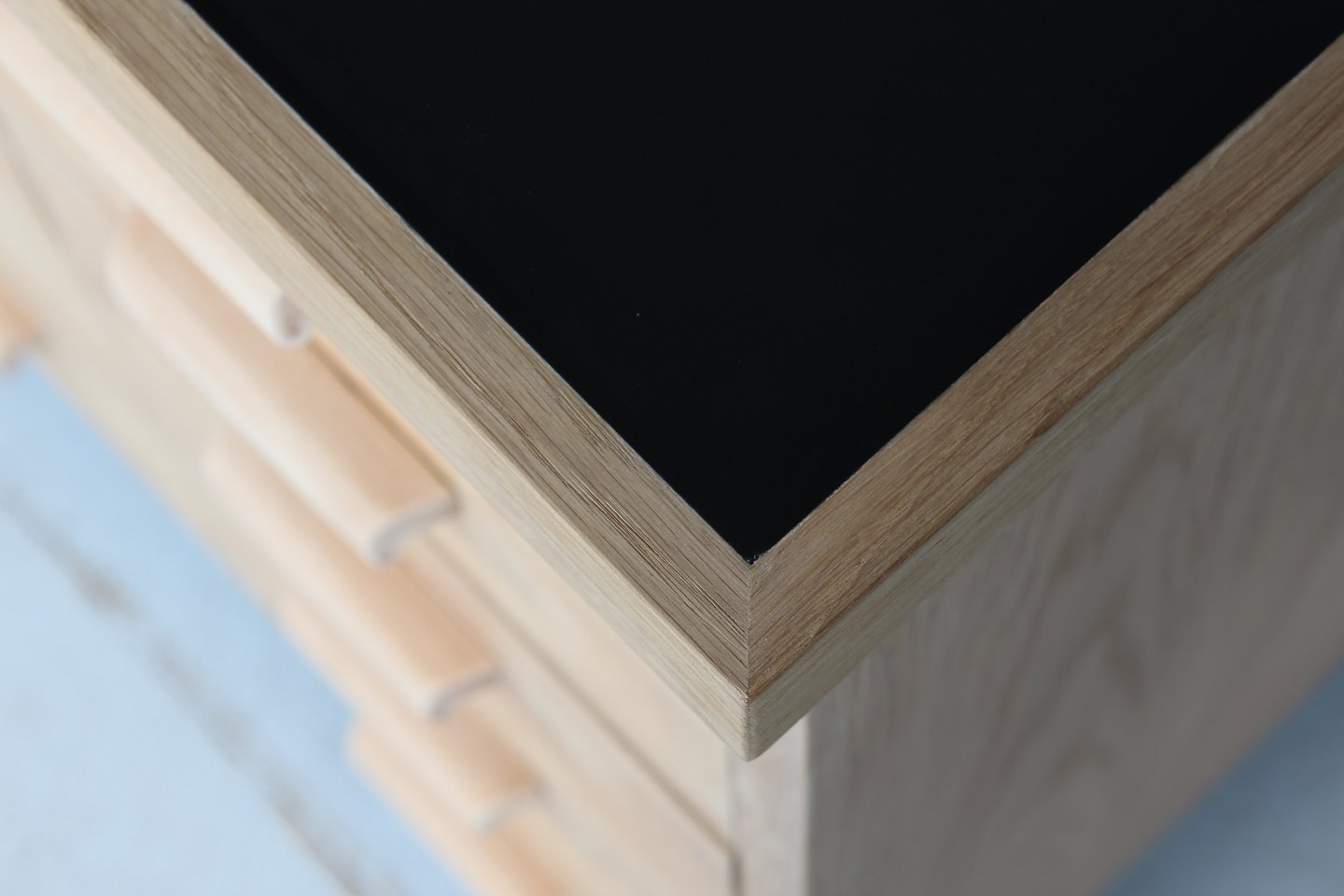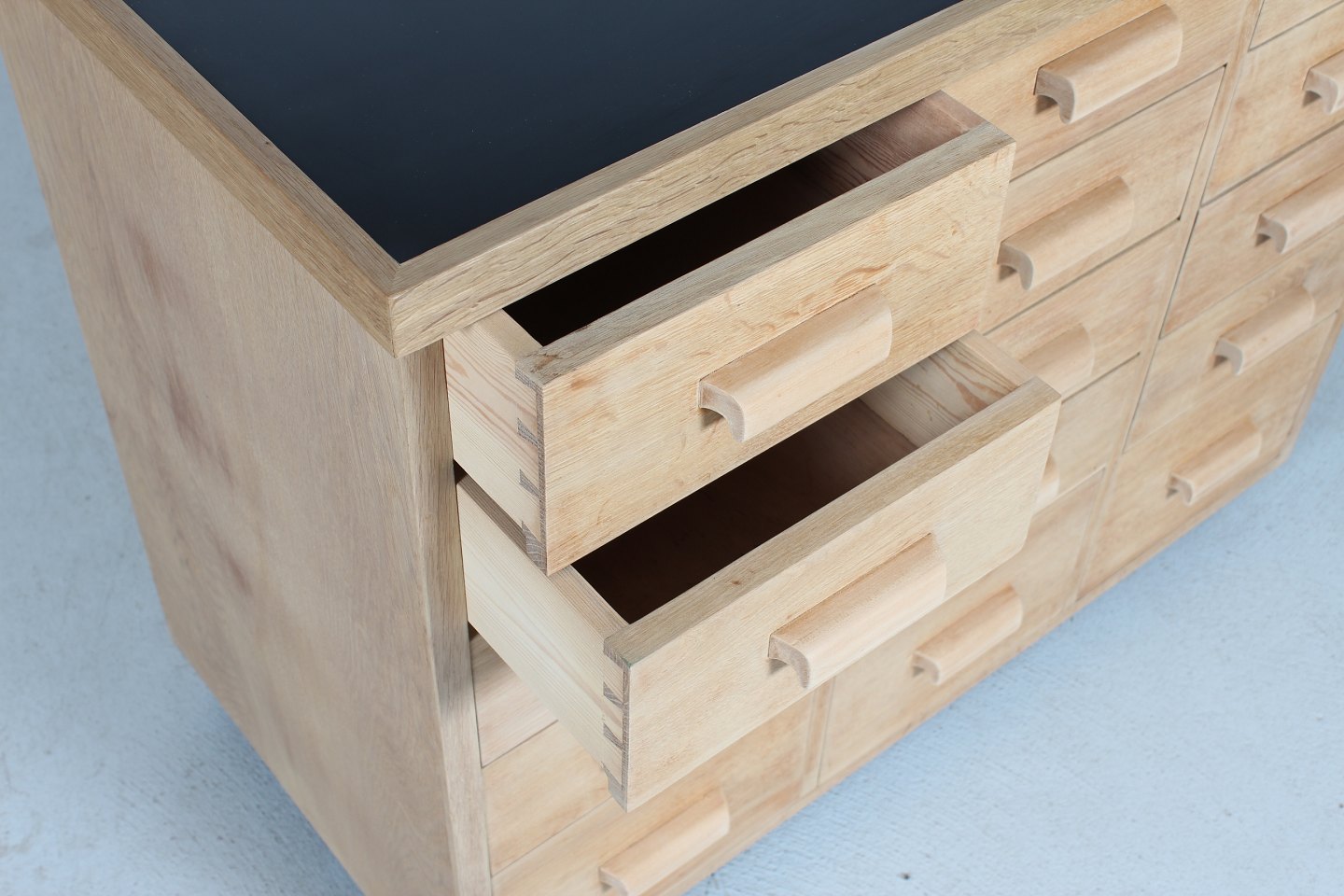 skuffer med greb af lyst træ