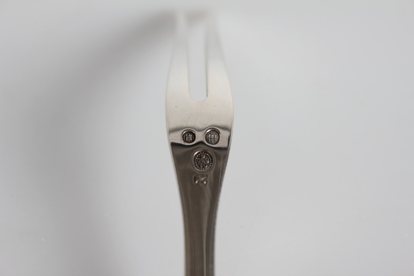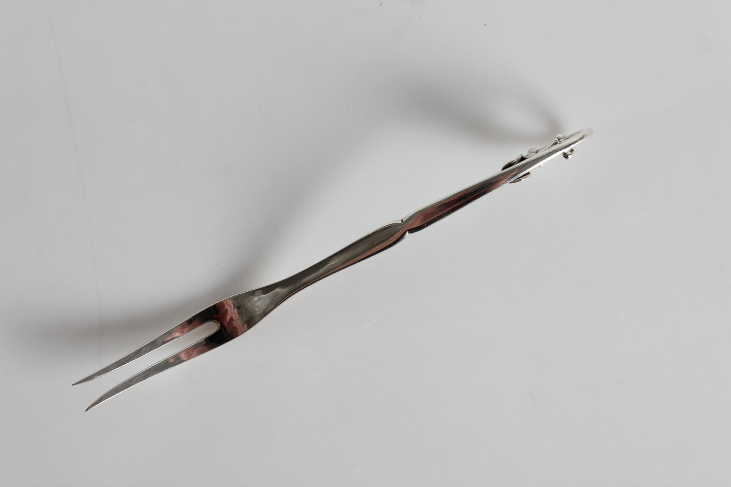Georg Jensen (1866-1935) Pyntebestik nr. 21 af tre-tårnet sølv 830s Tegnet af Georg Jensen i 1912 Pålægsgaffel med stempel fra 1929 Længde 14 cm Fin stand uden gravering