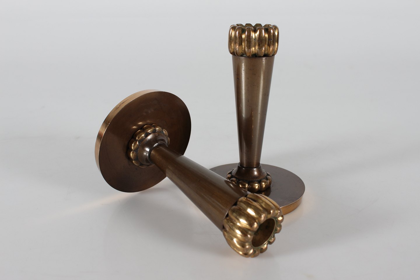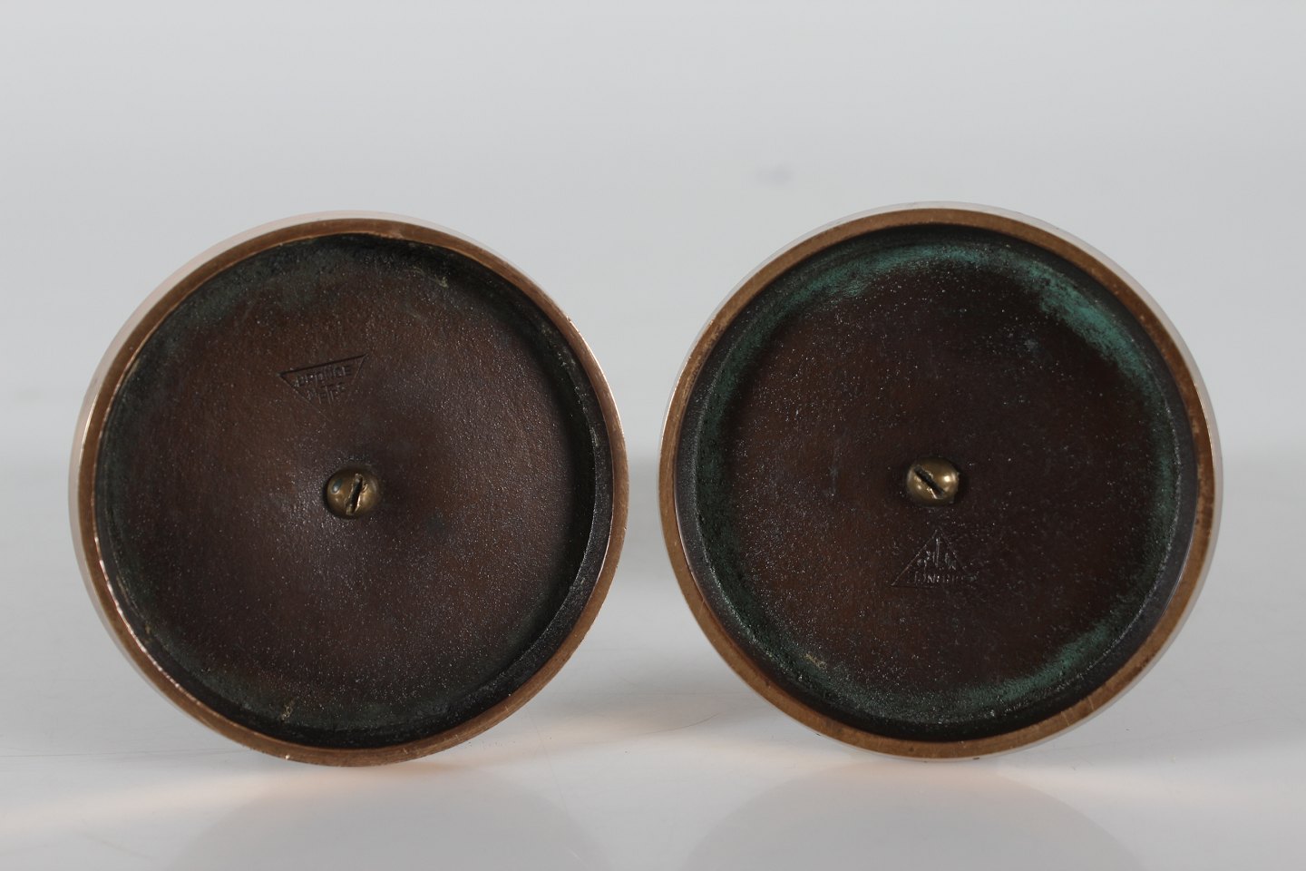 Art Deco candlesticks Pair of Metro candlesticks made of bronze from 1930s-1940s One candlestick is a little taller than the other Height 14 cm Diameter 9 cm Nice vintage condition