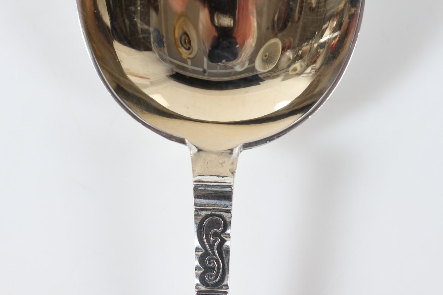 Antik Rococo Sølvbestik Antik Rococo bestik af 3 tårnet ægte sølv fremstillet af blandt andre Fredericia Sølvindustri Lille potageske med forgyldt laf og håndgravering Længde 28,5 cm Fin stand uden navnetræks indgraveringer