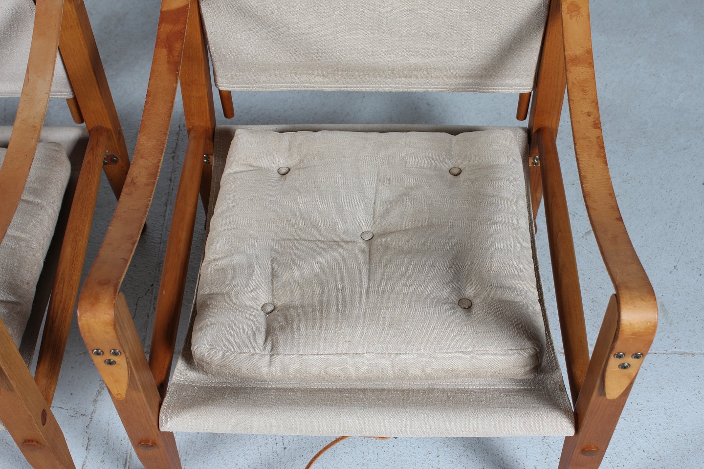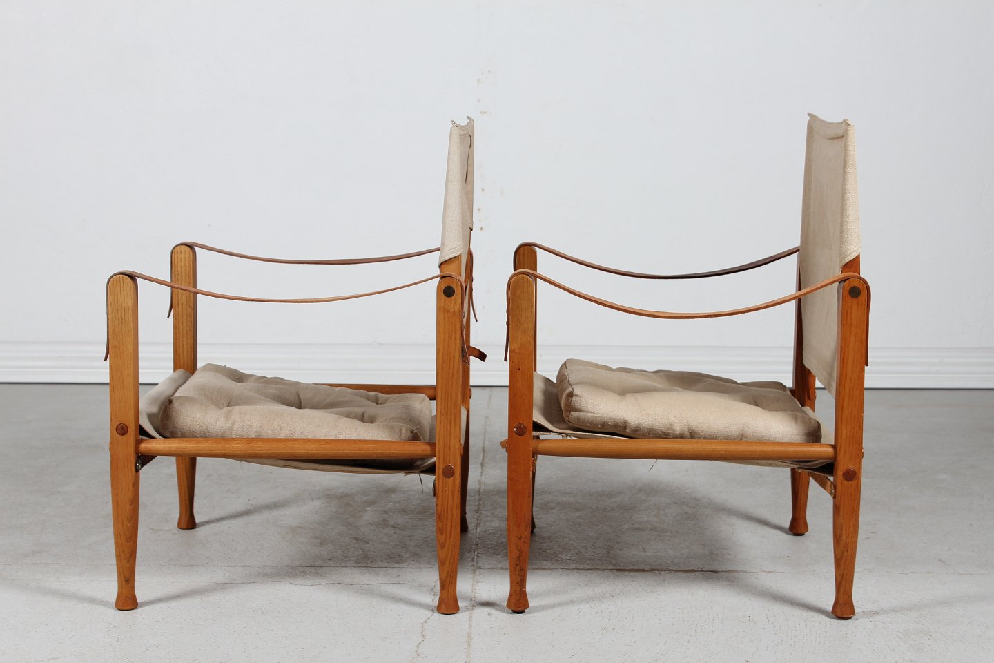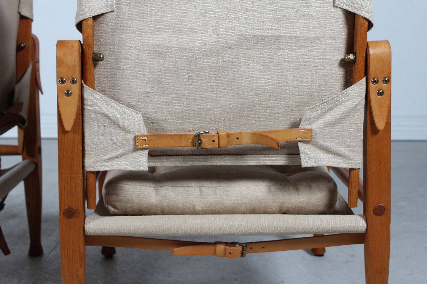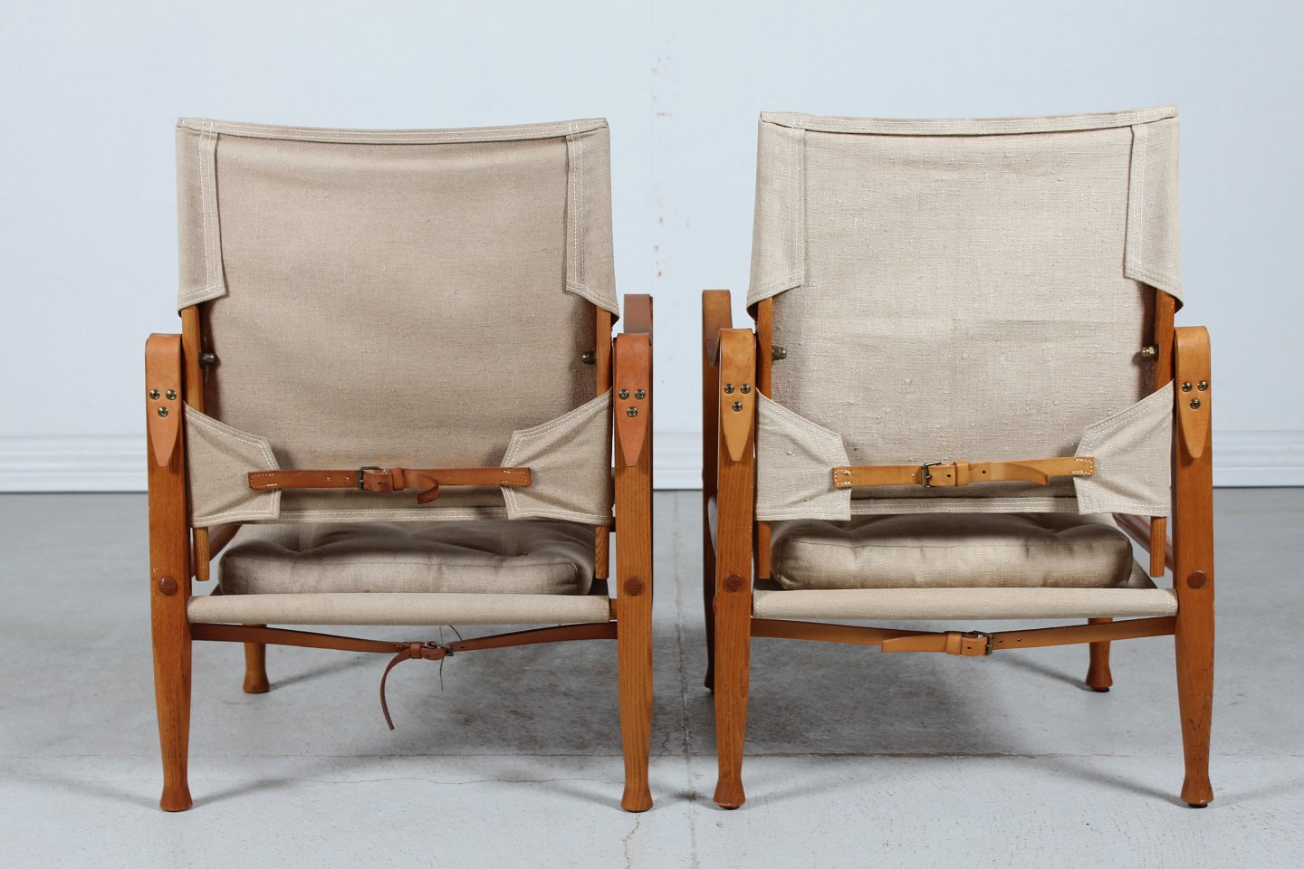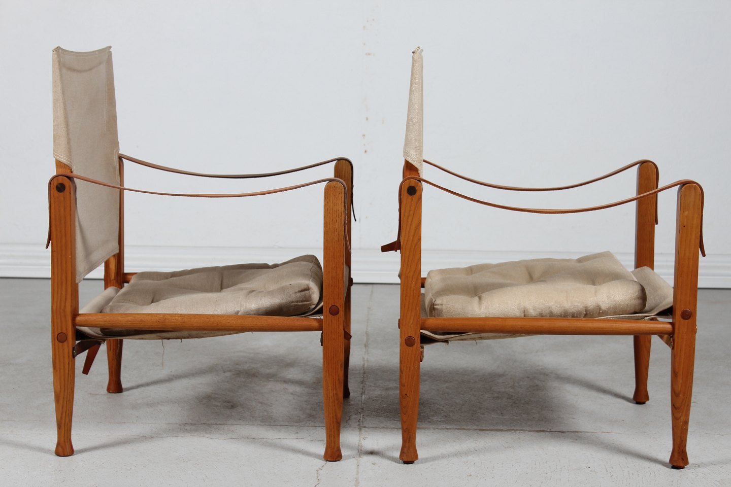 Kaare Klint (1888-1954) Safari Chairs made of ash and canvas with loose cushions Height 83 cm Depth 58 cm Width 56 cm Nice vintage condition