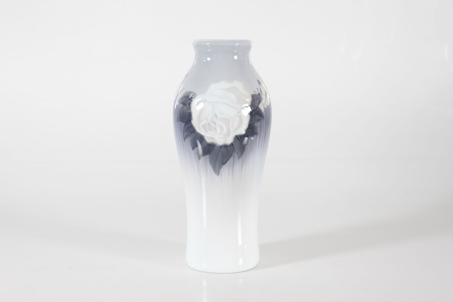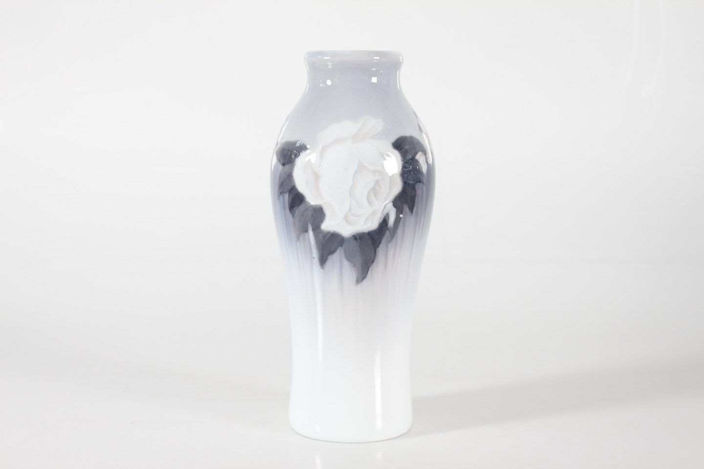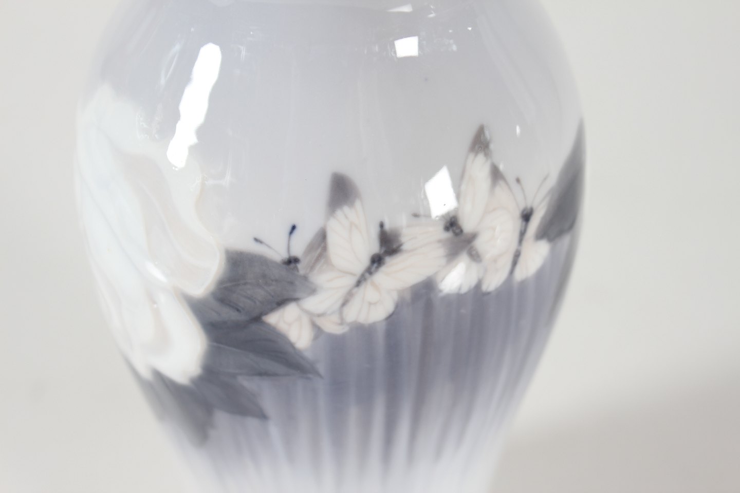 Royal Copenhagen Tall slim antique vase with roses and butterflies Item no. 1942/244 Made in the period 1894-1923 Height 32 cm Diameter 14 cm Very fine condition, factory 1 - no chips, cracks or repair