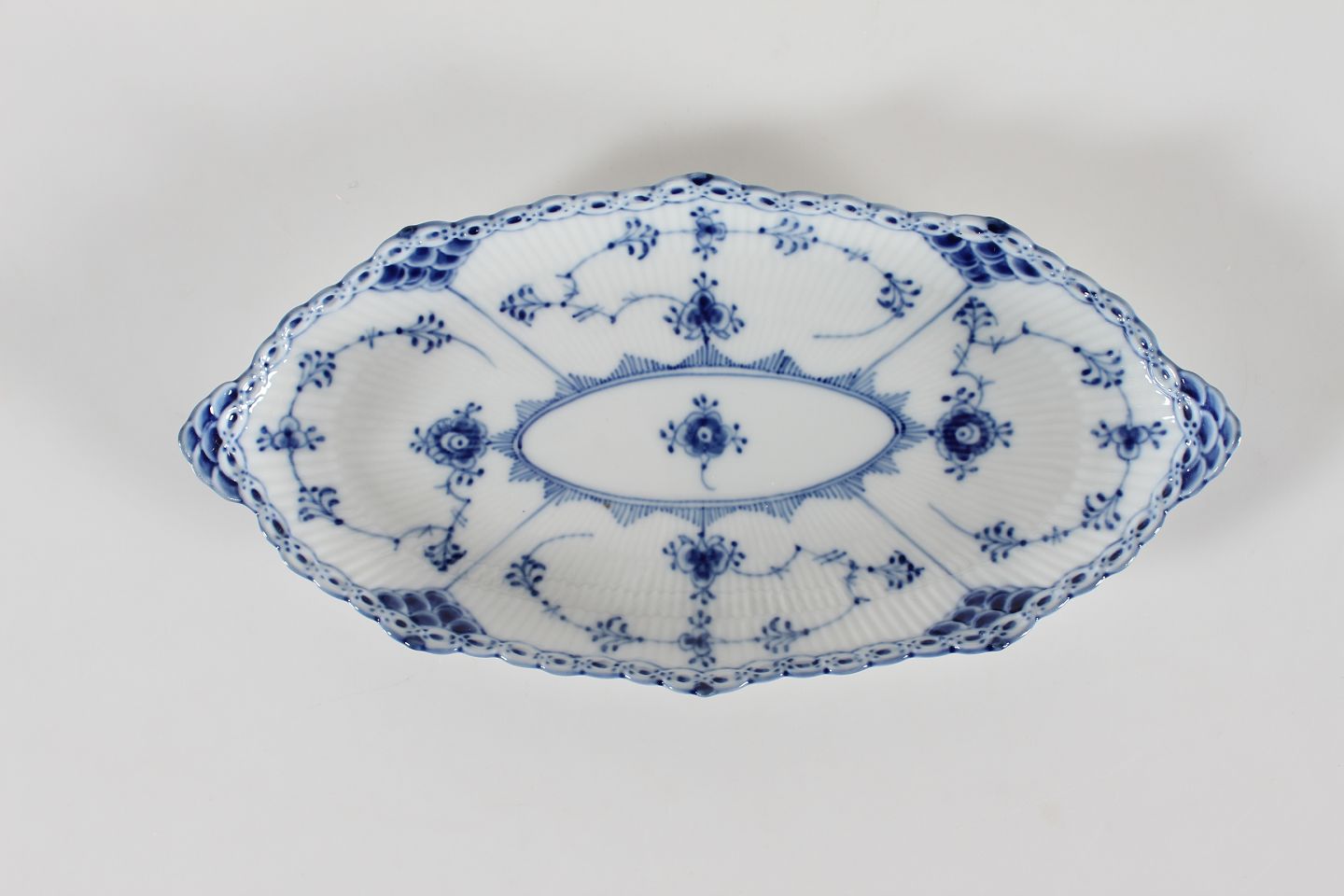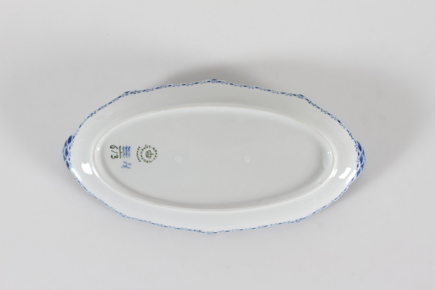 Royal Copenhagen Musselmalet Halvblonde Aflang assiet nr. 1/613 Med stempel fra 1963 Længde 24,5 cm Bredde 12,5 cm Fin fejlfri 2. sortering