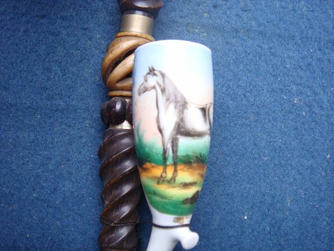 Long pipe. Length: 67 cm. PIB head with porcelain horse