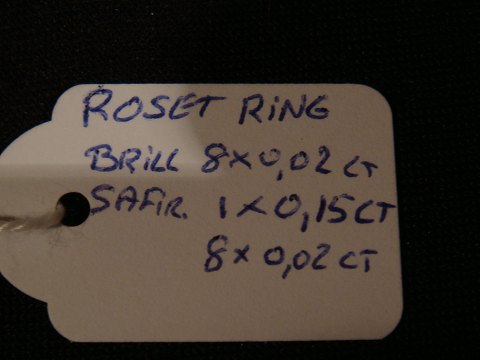 Brilliant: 8 x 0.02 ct = 0.16 ct. Sapphire 8 x .02 ct = .16 ct. sapphire in the middle = 0.15 ct