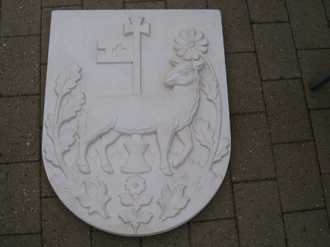 Relief from Assens Rådhus.Assens arms must also be weapons for New Assens! It has 700 years of tradition with the Christian symbol of God's Lamb and our glorious Dannebrog