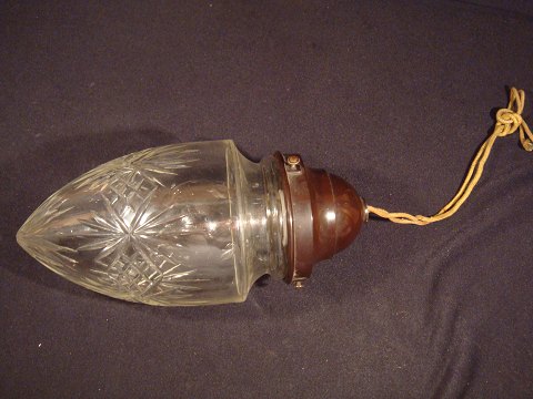 Old Glass ceiling lamp from the year 1924, Fyens Glasværk.et hole dome of electricity, blasted into a clear glass rim afsprængt and sanded. Cut Cut decoration Height 18.5 cm without mounting the assembly 25 cm.kastrup cat. 1924 serial No. 1206, which was constructed in Fyens glasværi in Odense.