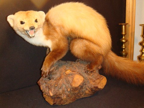 Udstoppet Mår- iller. på træstub. Meget flot og velholdt. Højde: 34 cm (SOLGT)