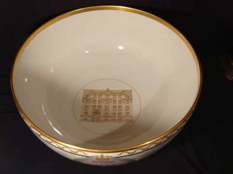 Schöne große Porzellanschale. Von der Königlichen Porzellanmanufaktur. Royal Copenhagen Festschrift Bowl 1775-1975. Mit gemalt Maersk Kontainer Schiff, die Royal Yacht Danebro, Kronborg, Schulschiff Dänemark und vieles mehr. Eine wirklich nette Bowl. Rc. Nr. 1508-2500, ist nur 2500 Exemplare gefertigt. Diese Nummer ist die 1508.