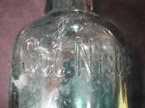 1 / 4 liter mouth blown mineral water bottle with patentpropinskr. SCT.NICOLAUS SOURCE WELL Anstalt AARHUS