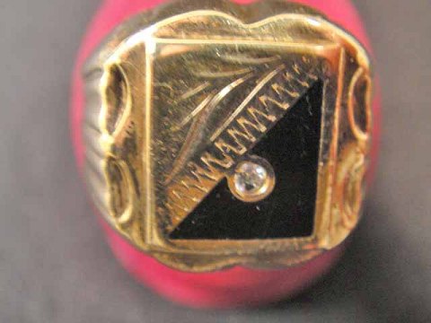 Ring med onyx og zirkon.