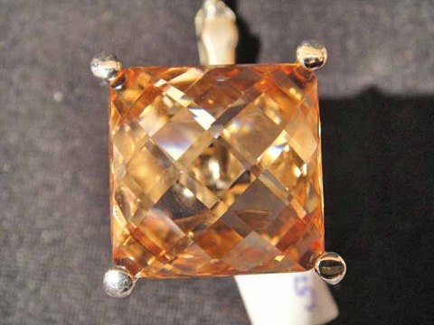 Ring with big colored crystal of 2x2 cm. Silver sterling 925. Ring Size: 53