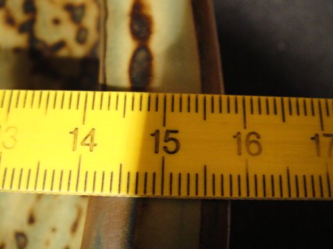 Højde 4 cm, diameter 16 cm.