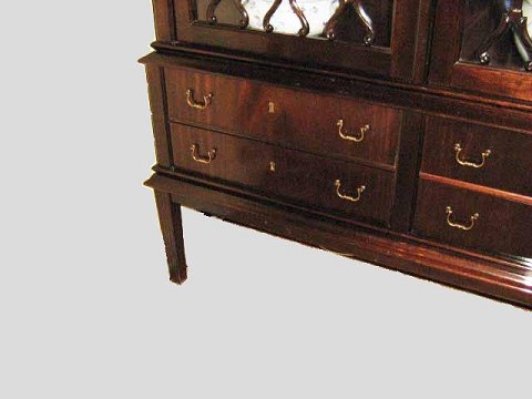 Vitrine skab med 4 skuffer, udført i mahogni.