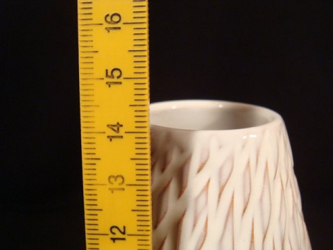 Hvid rillet vase fra Løvemose H: 14 cm.